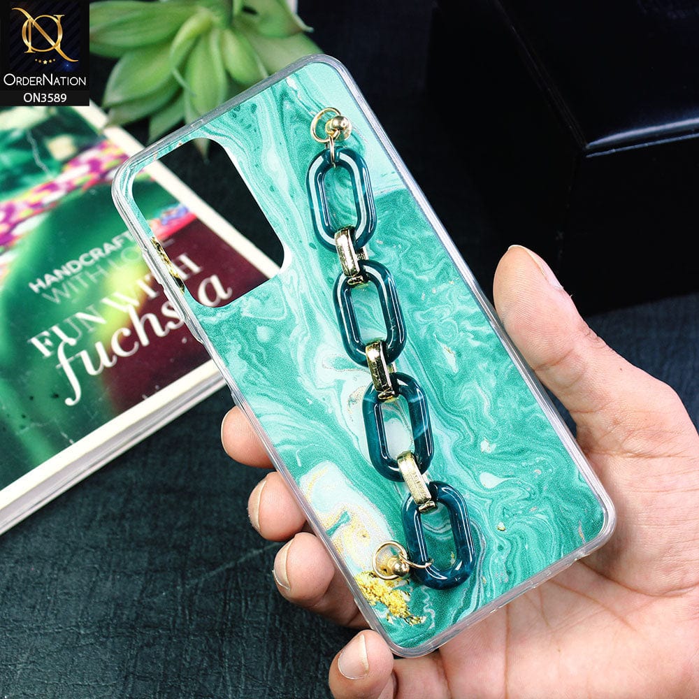Samsung Galaxy A23 Cover - Green - Trendy Marble Waves Texture Soft Tpu Case with Chain Holder