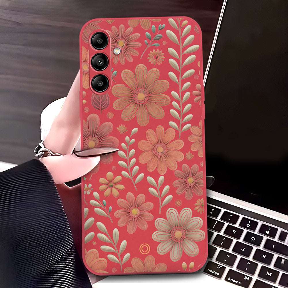 Samsung Galaxy A24 4G Cover - Red - D4 - ONation Floral Series - HQ Liquid Silicone Soft Case
