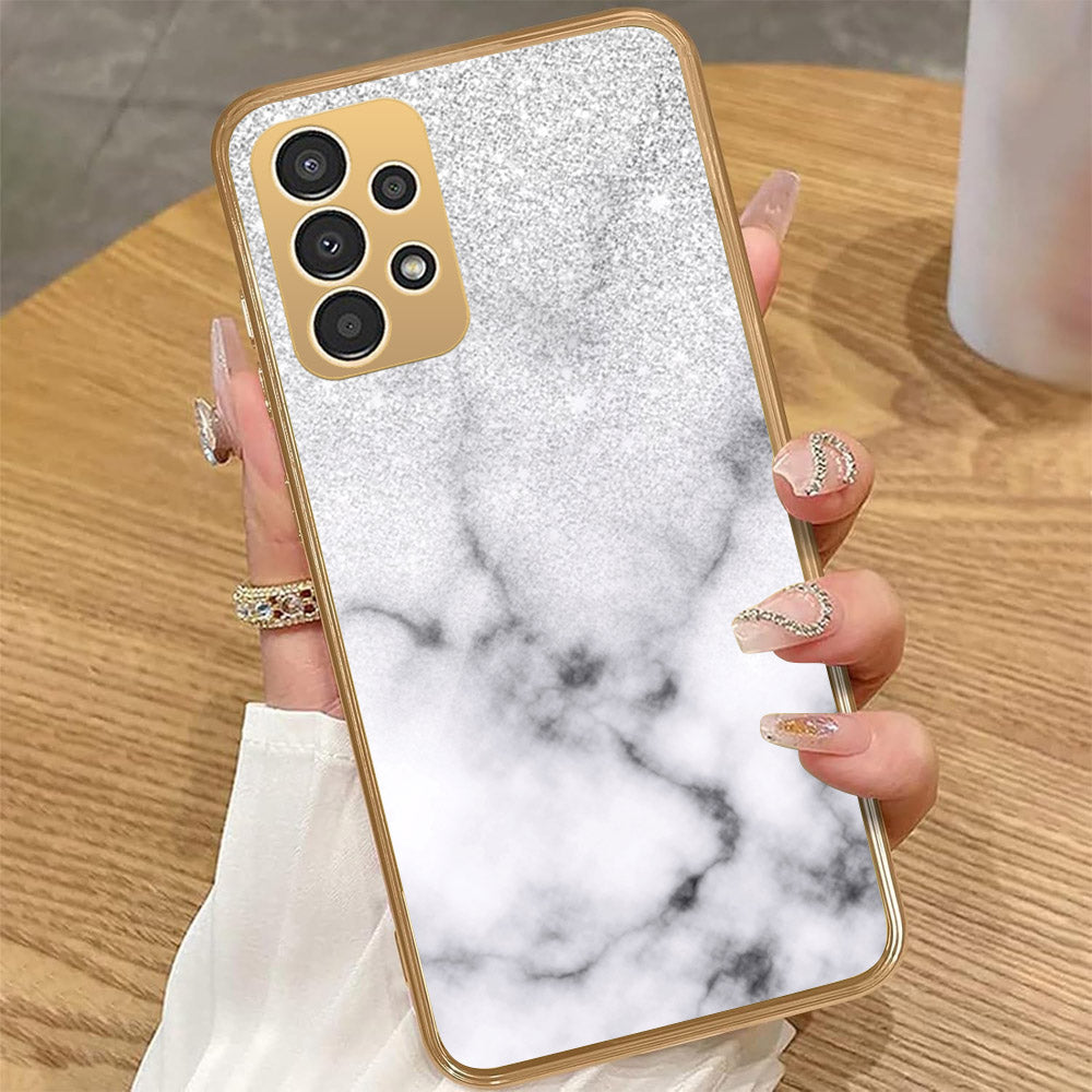 Samsung Galaxy A32 - White Marble Series - HQ Premium Shine Durable Golden Electroplate Case