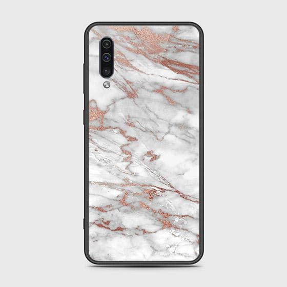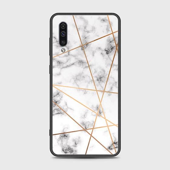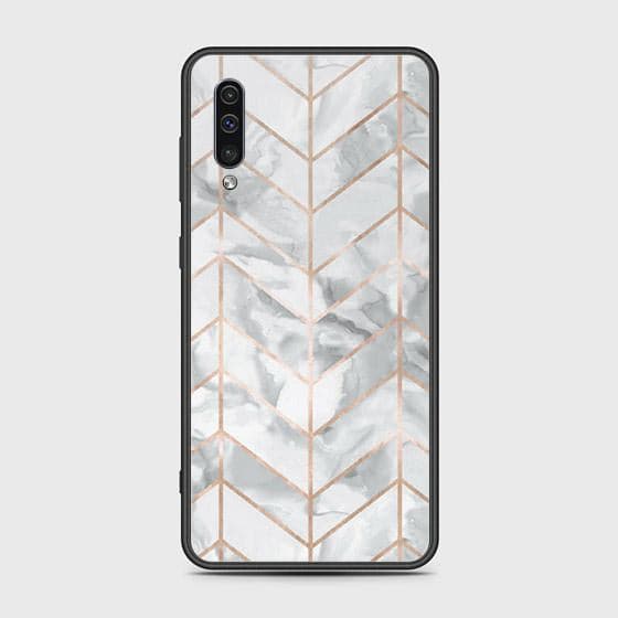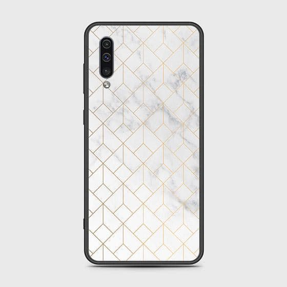 Samsung Galaxy A50 Cover - White Marble Series 2 - HQ Ultra Shine Premium Infinity Glass Soft Silicon Borders Case
