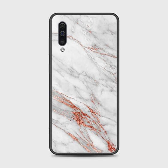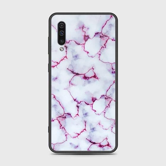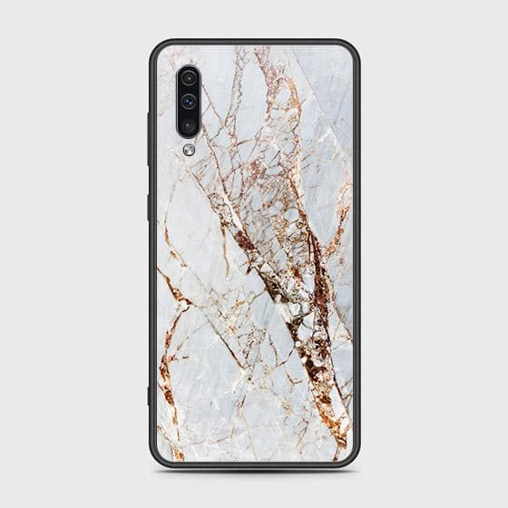 Samsung Galaxy A50 Cover - White Marble Series - HQ Ultra Shine Premium Infinity Glass Soft Silicon Borders Case