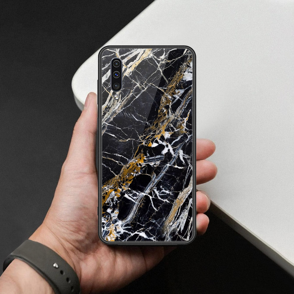 Samsung Galaxy A50s Cover - Black Marble Series - HQ Ultra Shine Premium Infinity Glass Soft Silicon Borders Case