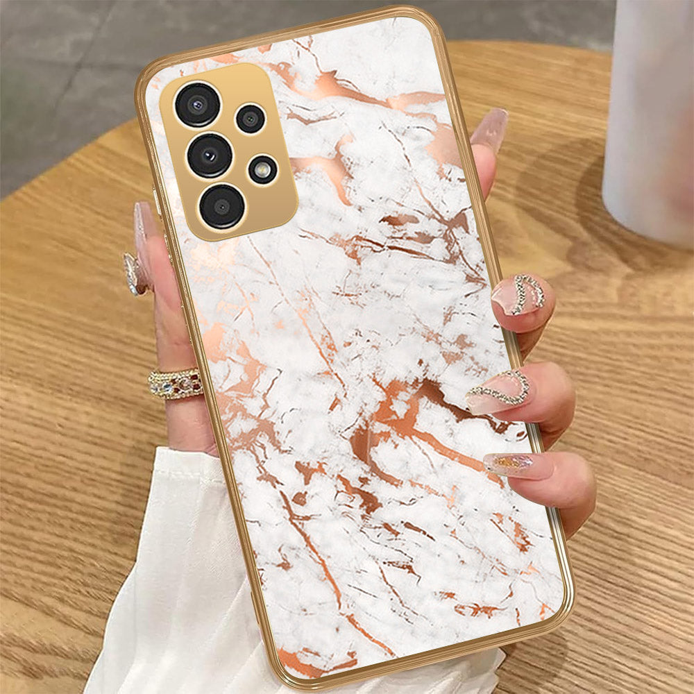 Samsung Galaxy A53 5G - White Marble Series 2 - HQ Premium Shine Durable Golden Electroplate Case