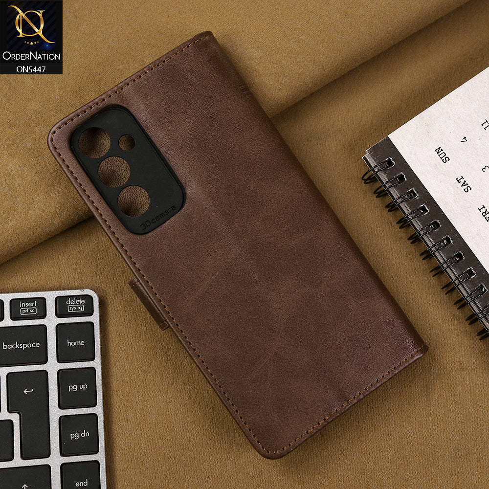 Samsung Galaxy A54 Cover - Dark Brown - Premium Leather Megantic Flip Book Covers With Card Holding Option