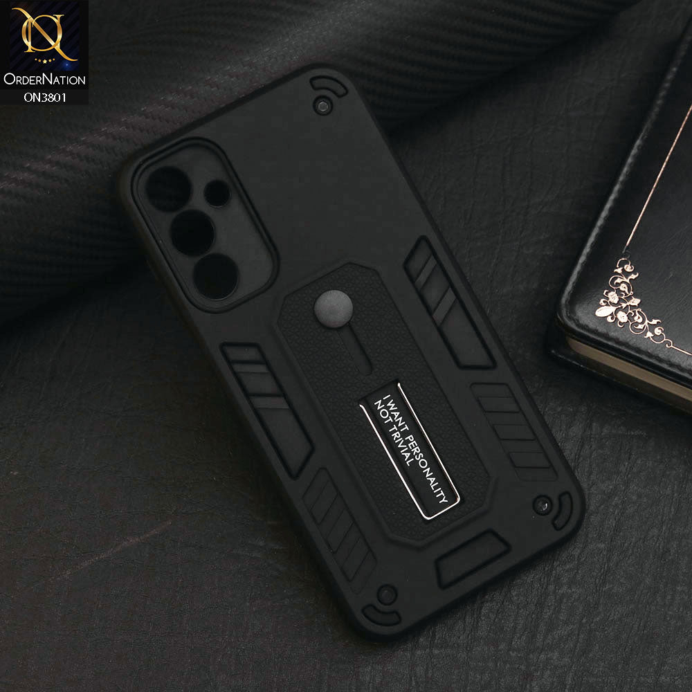 Samsung Galaxy A55 5G Cover - Black - Hybrid Stylish Slide Finger Grip With Metal Kickstand Soft Borders Case