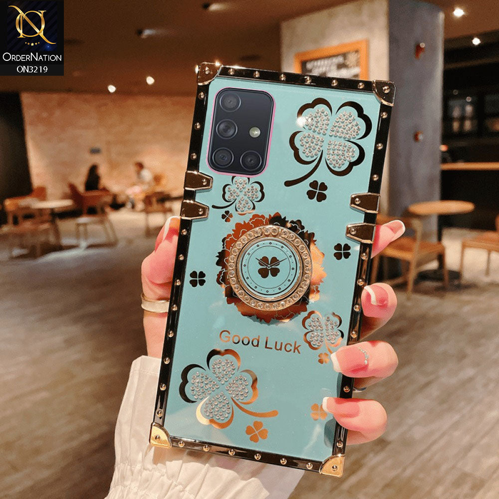 Samsung Galaxy A71 Cover - Seafoam Green  - Square Bling Diamond Glitter Soft TPU Trunk Case with Ring Holder