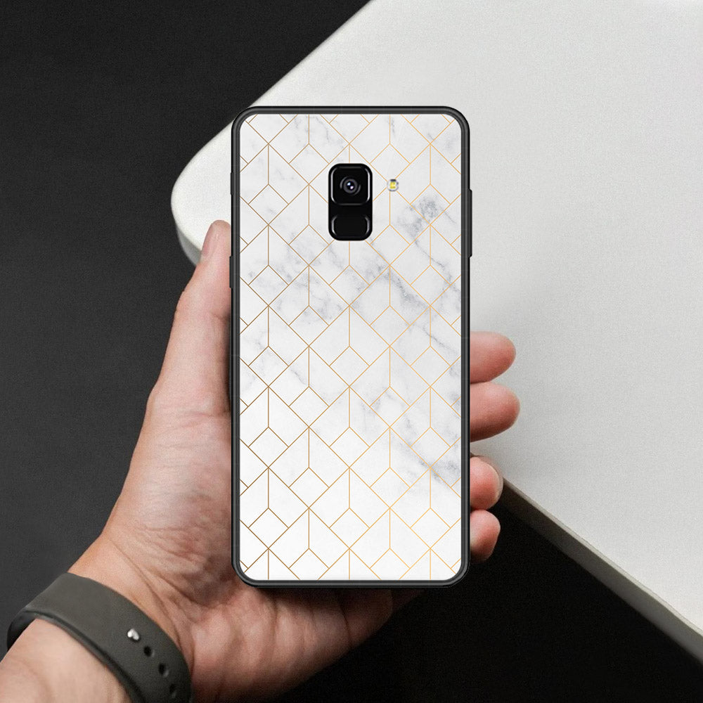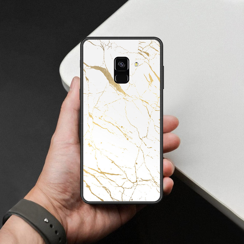 Samsung Galaxy A8 2018 Cover - White Marble Series 2 - HQ Ultra Shine Premium Infinity Glass Soft Silicon Borders Case
