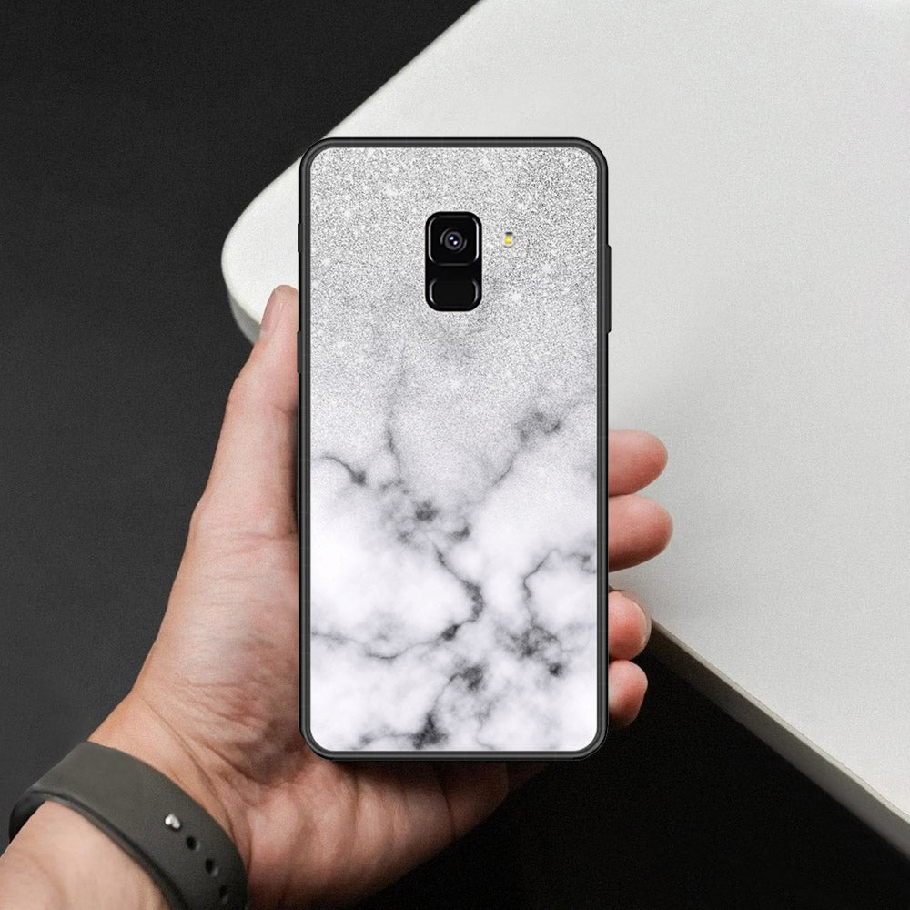 Samsung Galaxy A8 2018 Cover - White Marble Series - HQ Ultra Shine Premium Infinity Glass Soft Silicon Borders Case