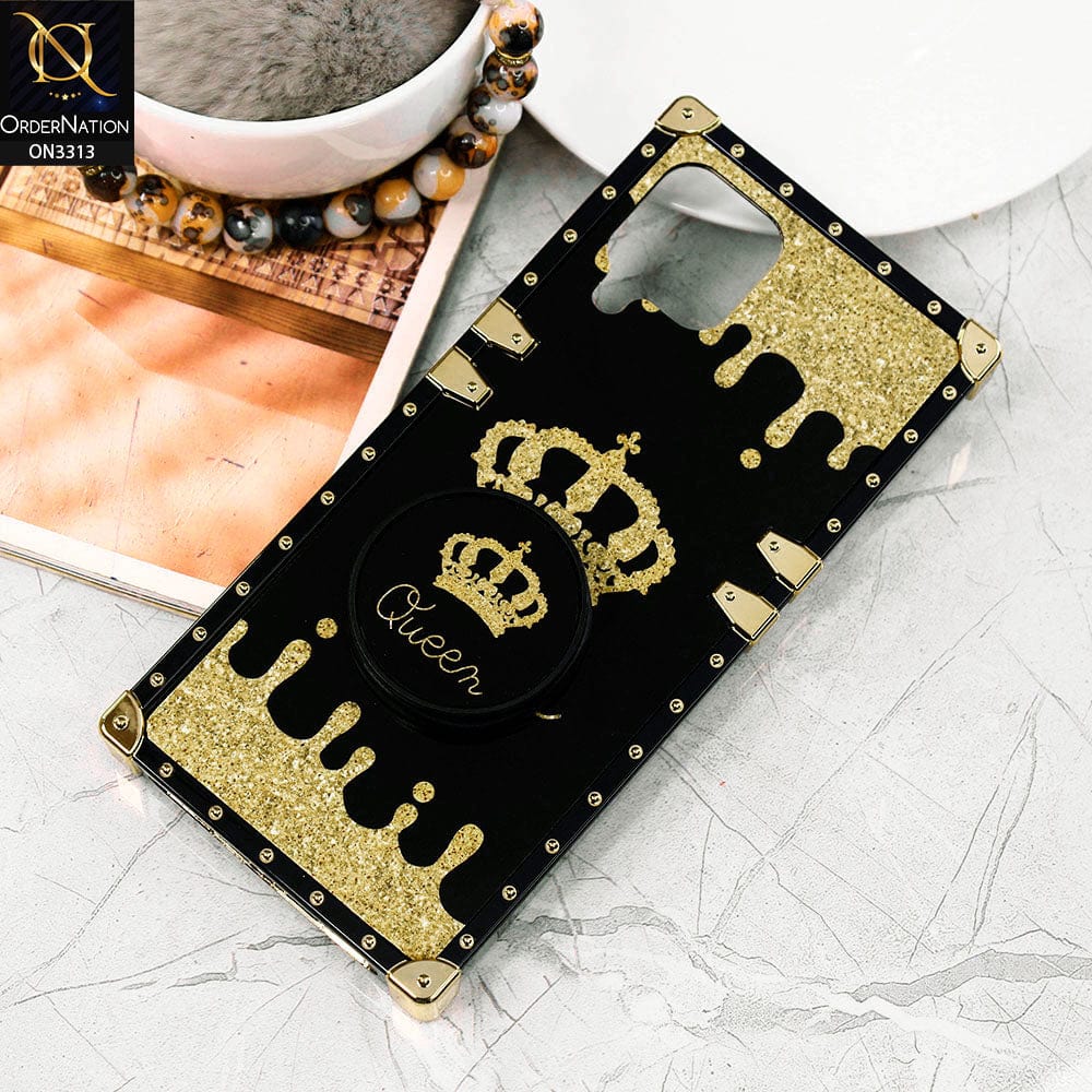 Infinix Note 7 Cover - Black - Golden Electroplated Luxury Square Soft TPU Protective Case with Popsocket Holder