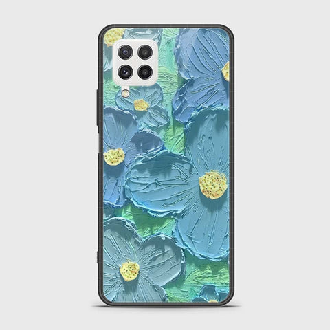 Samsung Galaxy M32 Cover - Floral Series - Design 1 - Purple & Aqua - HQ Ultra Shine Premium Infinity Glass Soft Silicon Borders Case