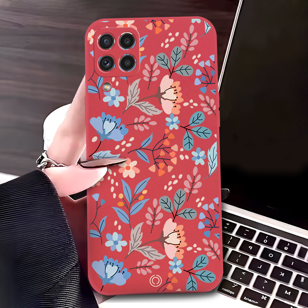 Samsung Galaxy M32 Cover - Red - D1 - ONation Floral Series - HQ Liquid Silicone Soft Case