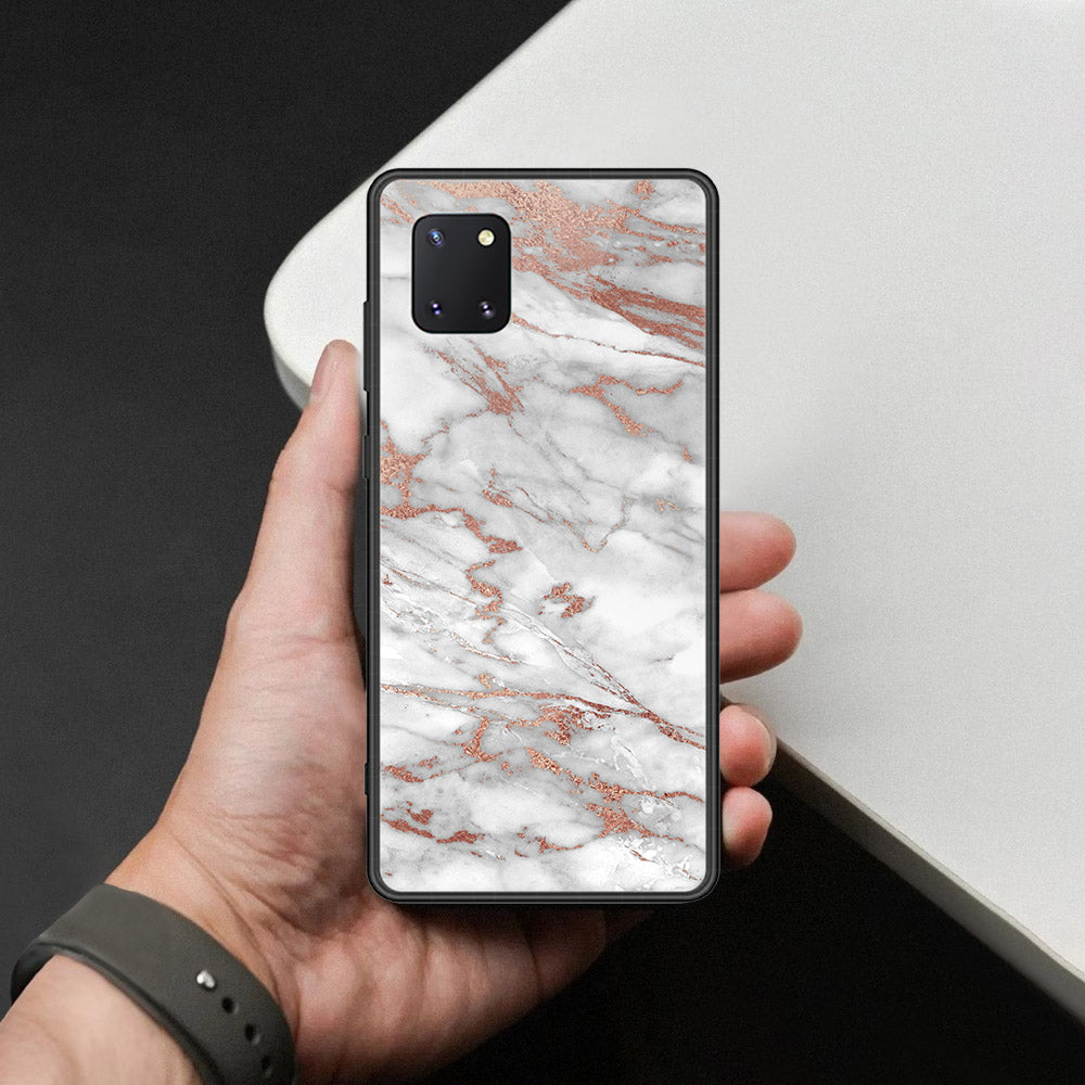 Samsung Galaxy Note 10 Lite Cover - White Marble Series 2 - HQ Ultra Shine Premium Infinity Glass Soft Silicon Borders Case