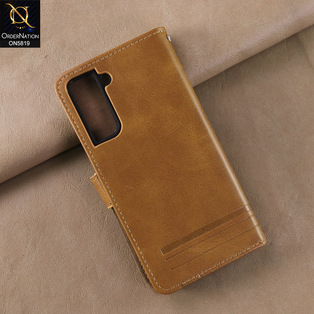 Samsung Galaxy S21 5G Cover - Light Brown -  Way Out Excellence Quality Soft Tpu Leather Flip Book With Card Holding Slots