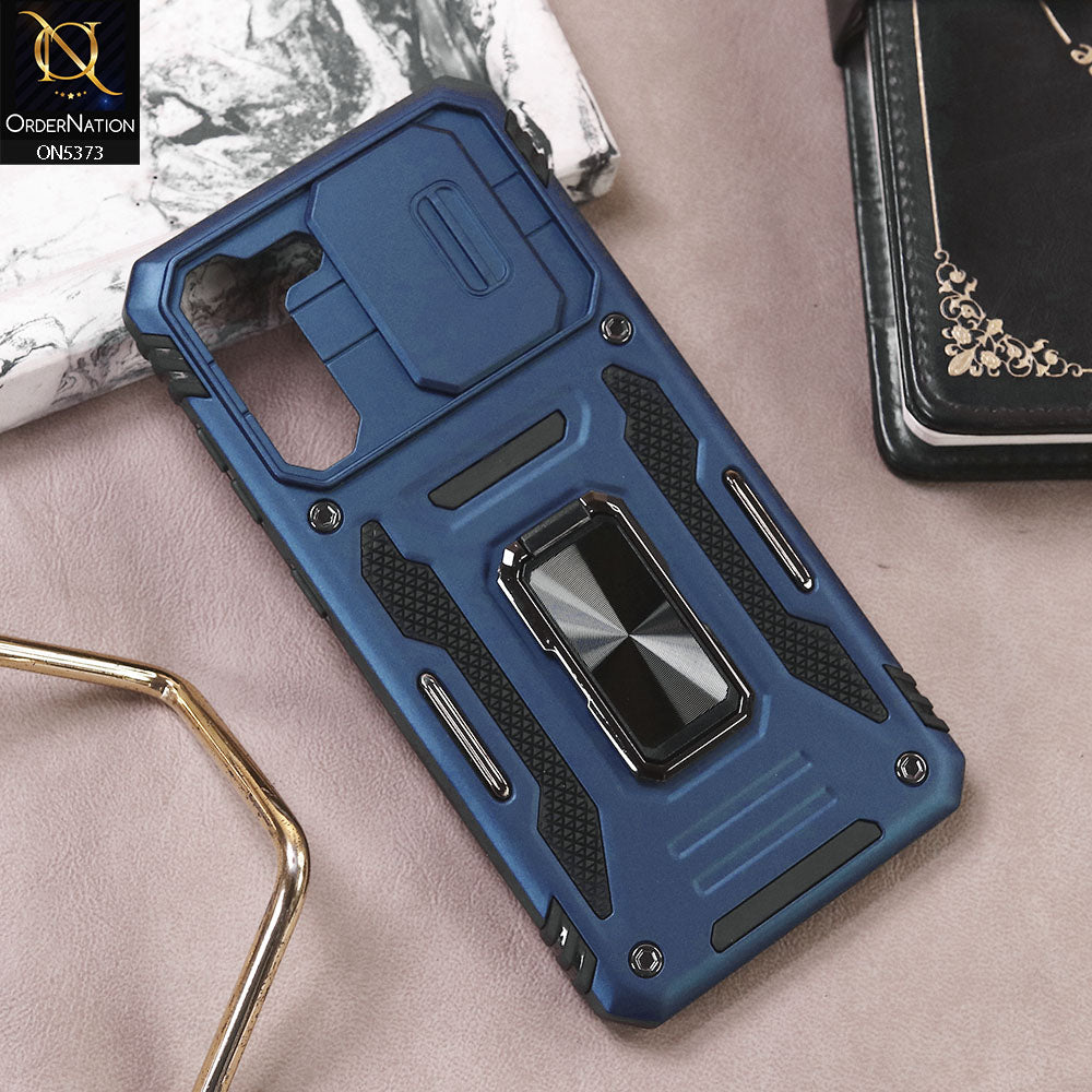 Samsung Galaxy S21 FE 5G Cover - Blue - New Heavy  Duty Hybrid Protective Case With 360 Rotatable Kickstand Holder