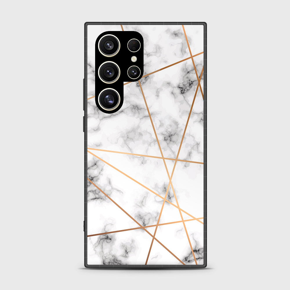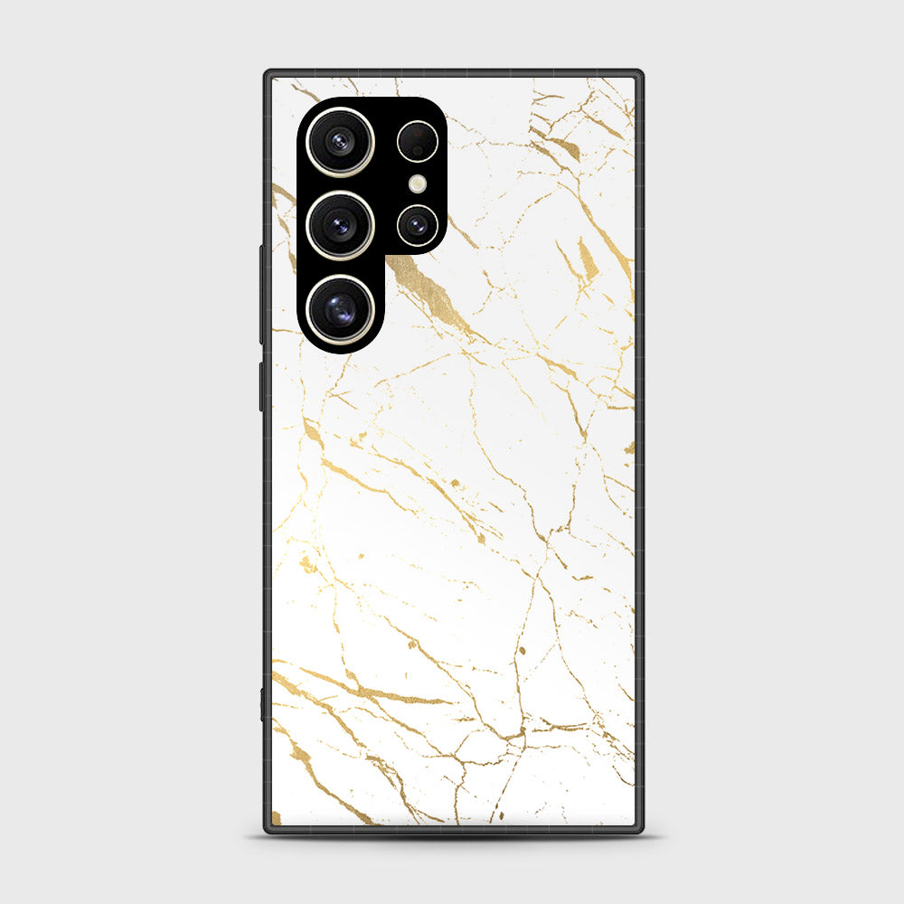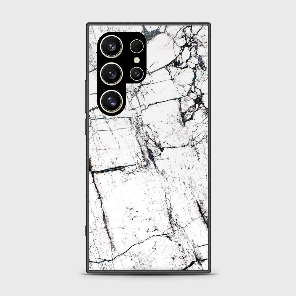 Samsung Galaxy S24 Ultra Cover- White Marble Series 2 - HQ Ultra Shine Premium Infinity Glass Soft Silicon Borders Case