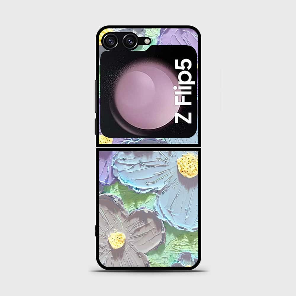 Samsung Galaxy Z Flip 5 5G Cover - Floral Series - Design 1 - Purple & Aqua - HQ Premium Shine Durable Shatterproof Case