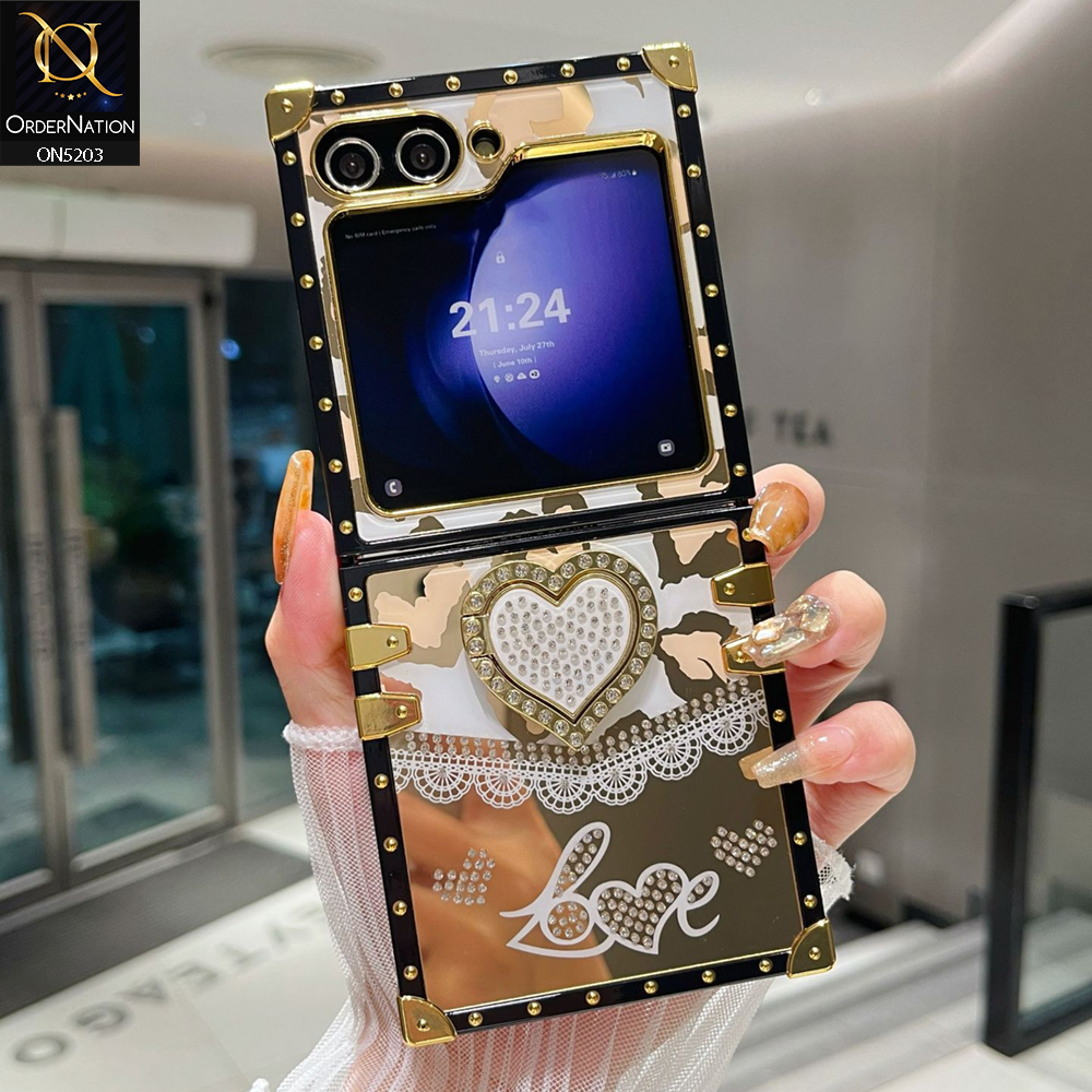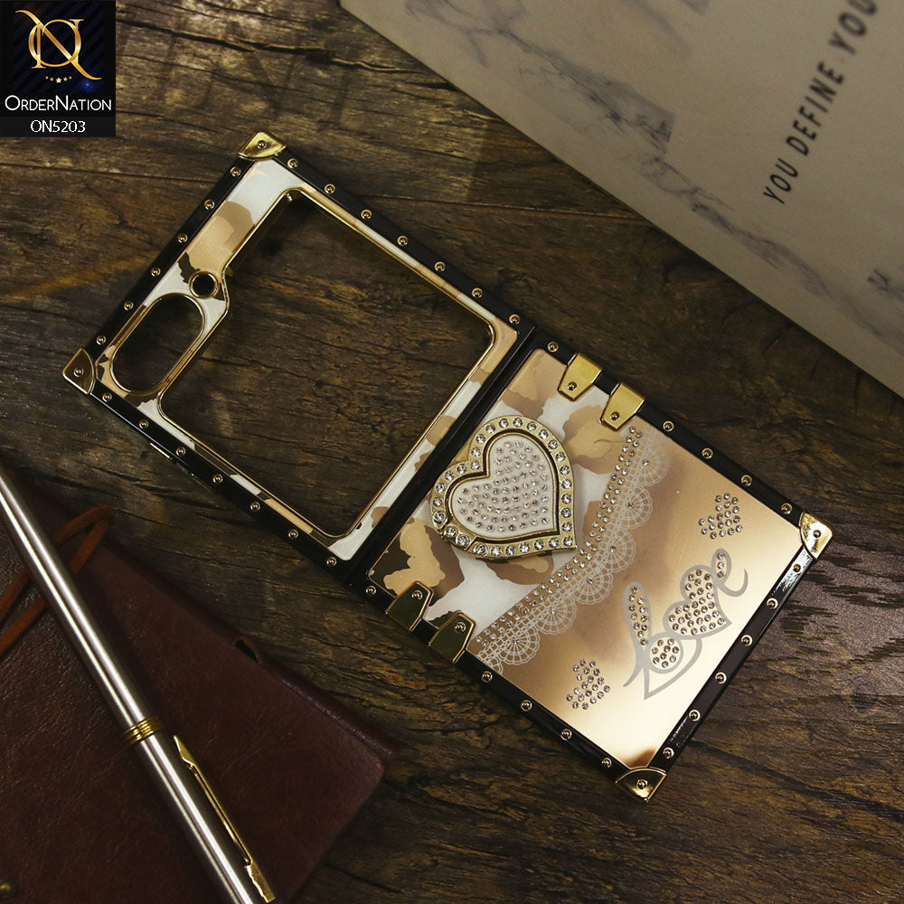 Samsung Galaxy Z Flip 5 5G Cover - White - Heart Bling Diamond Glitter Soft TPU Trunk Case With Ring Holder
