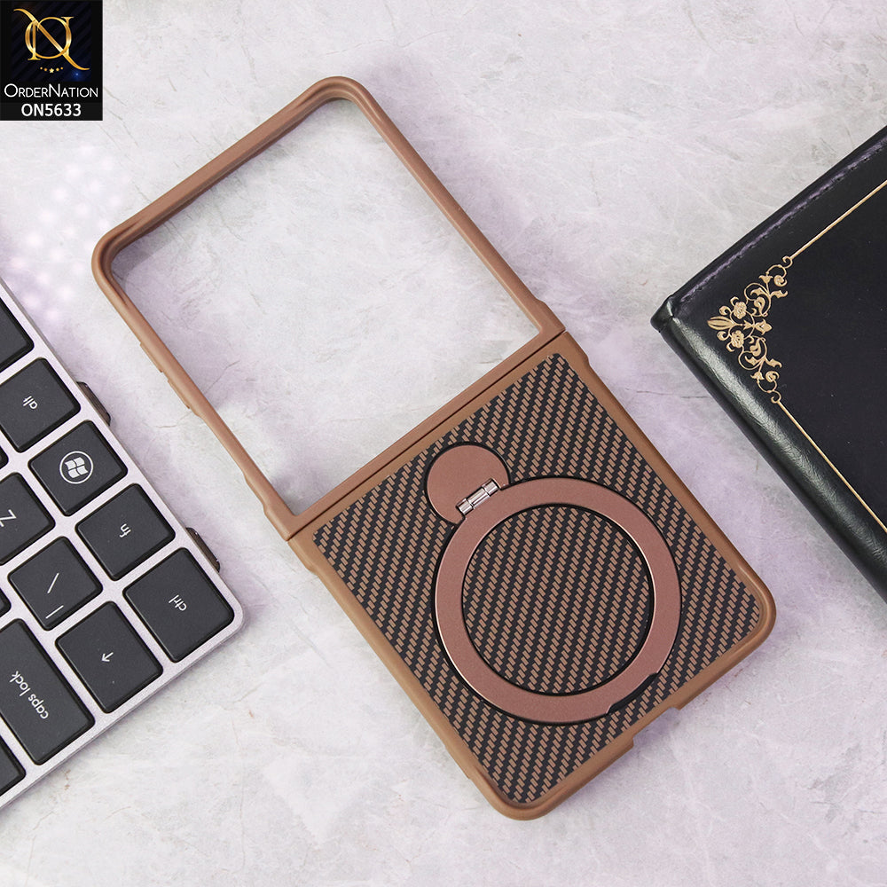 Samsung Galaxy Z Flip 7 Cover - Brown - Carbon Fiber Texture Design Kickstand Case