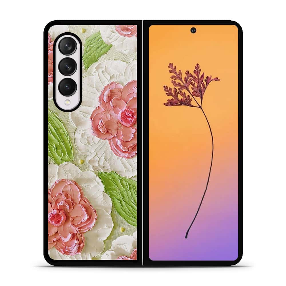 Samsung Galaxy Z Fold 4 5G Cover - Floral Series - Design 13 - Offwhite & Green - HQ Premium Shine Durable Shatterproof Case