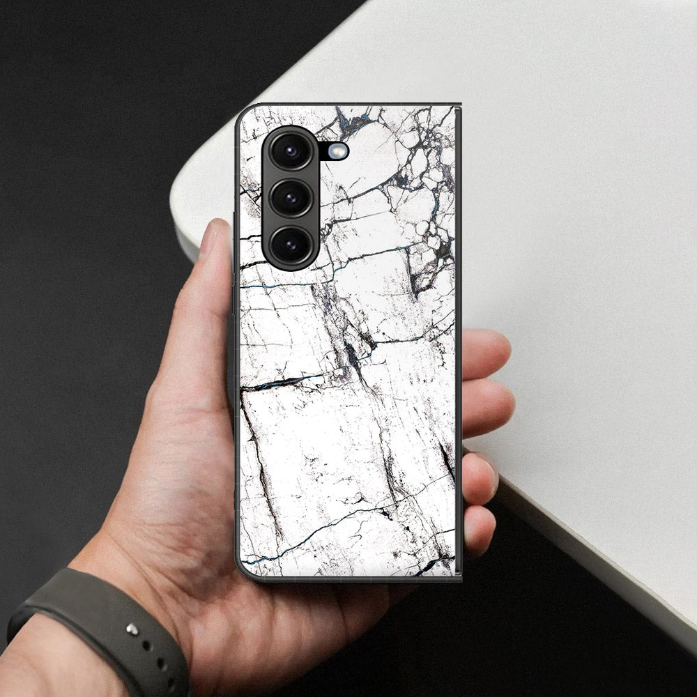 Samsung Galaxy Z Fold 6 5G Cover - White Marble Series 2 - HQ Premium Shine Durable Shatterproof Case