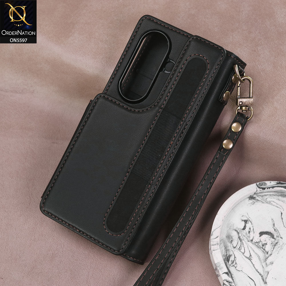 Samsung Galaxy Z Fold 7 Cover - Black - CaseMe Premium Wallet Case with RFID Blocking & Kickstand Black