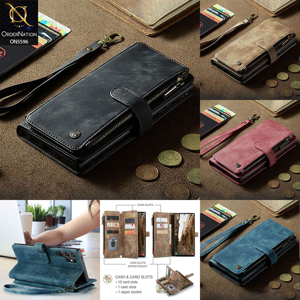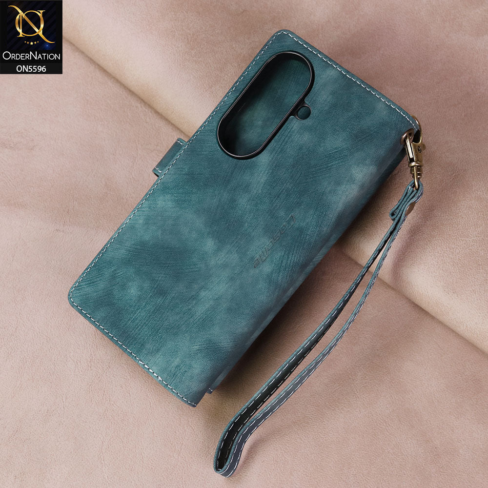 Samsung Galaxy Z Fold 7 Cover - Blue - CaseMe Premium Vintage Leather Folio Zipper Wallet Case with Magnetic Closure and 7 Card Slots