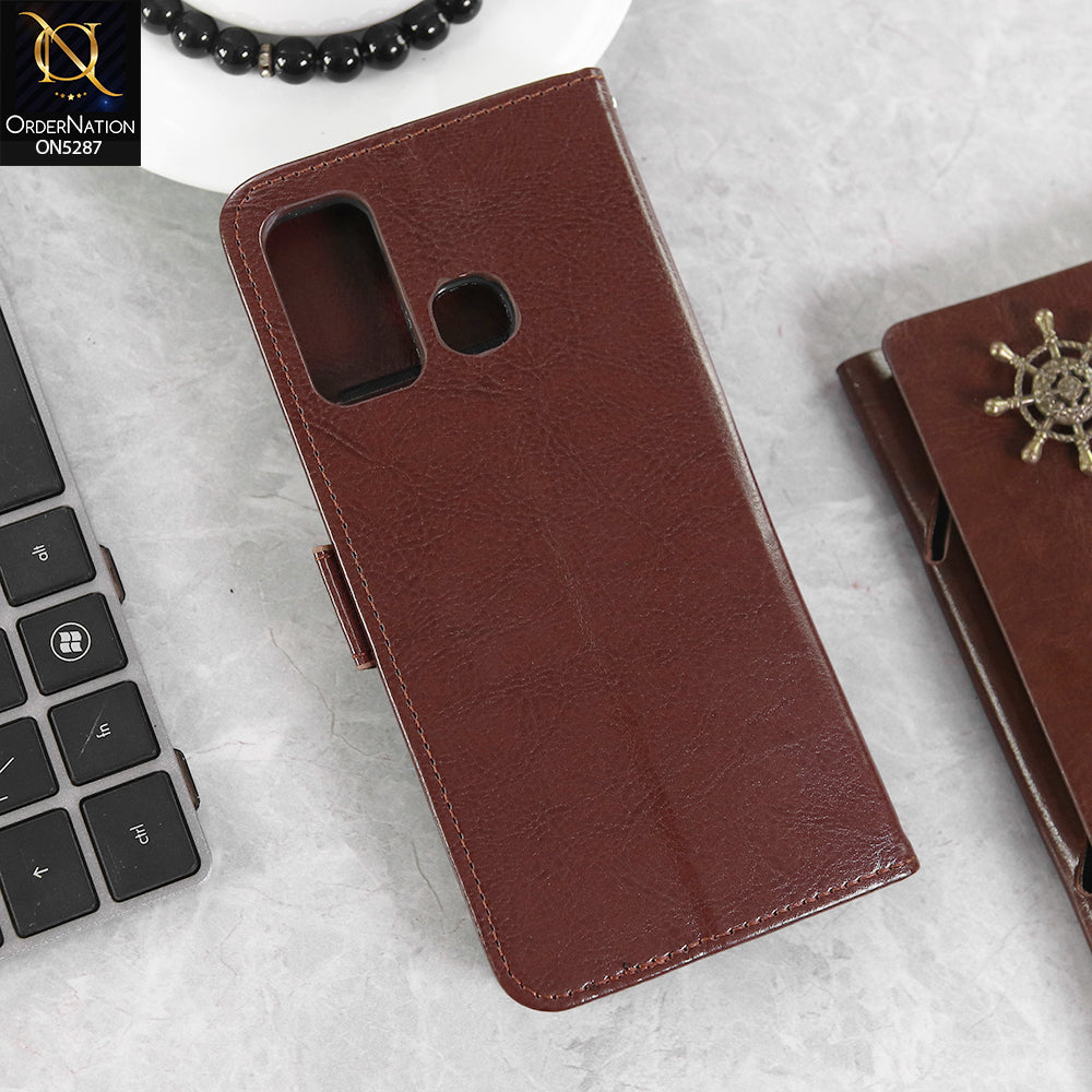Tecno Camon 15 Cover - Brown - Premium PU Leather Magnetic Flip Book Card Slots Wallet Soft Case
