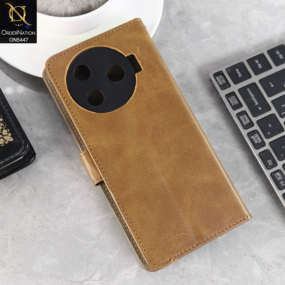 Tecno Camon 30 Pro 5G Cover - Light Brown -  Premium Leather Megantic Flip Book Covers With Card Holding Option