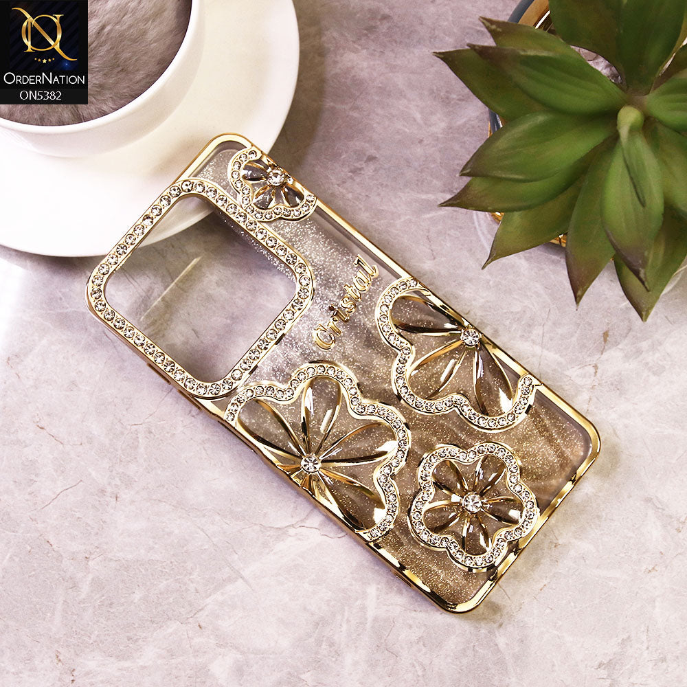 Tecno Pop 8 Cover - Golden - Elegant Crystal Rhinestones Flower Dual Tone Glitter Shine Case (Glitter Does not Move)
