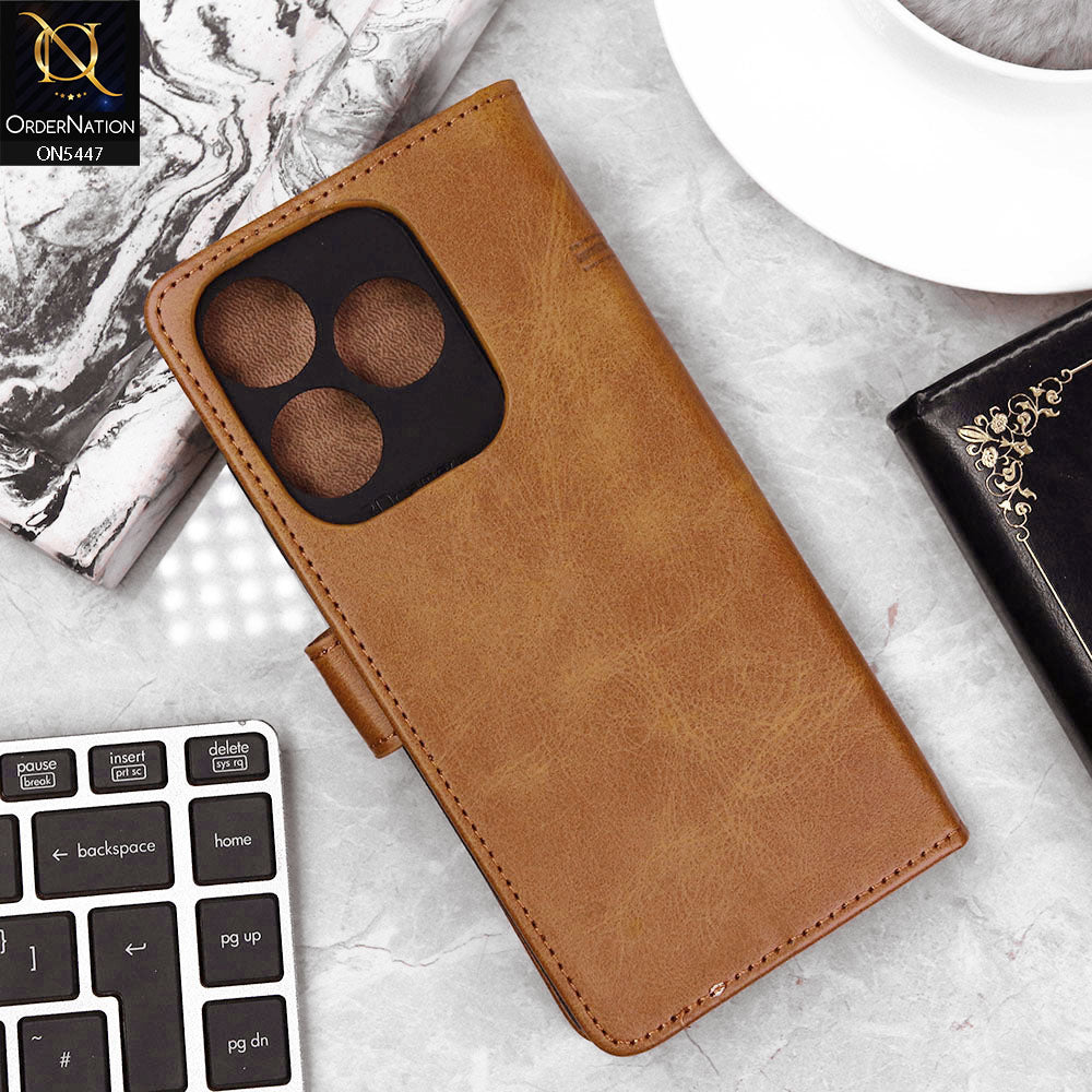 Tecno Spark 10C Cover - Light Brown - Premium Leather Megantic Flip Book Covers With Card Holding Option