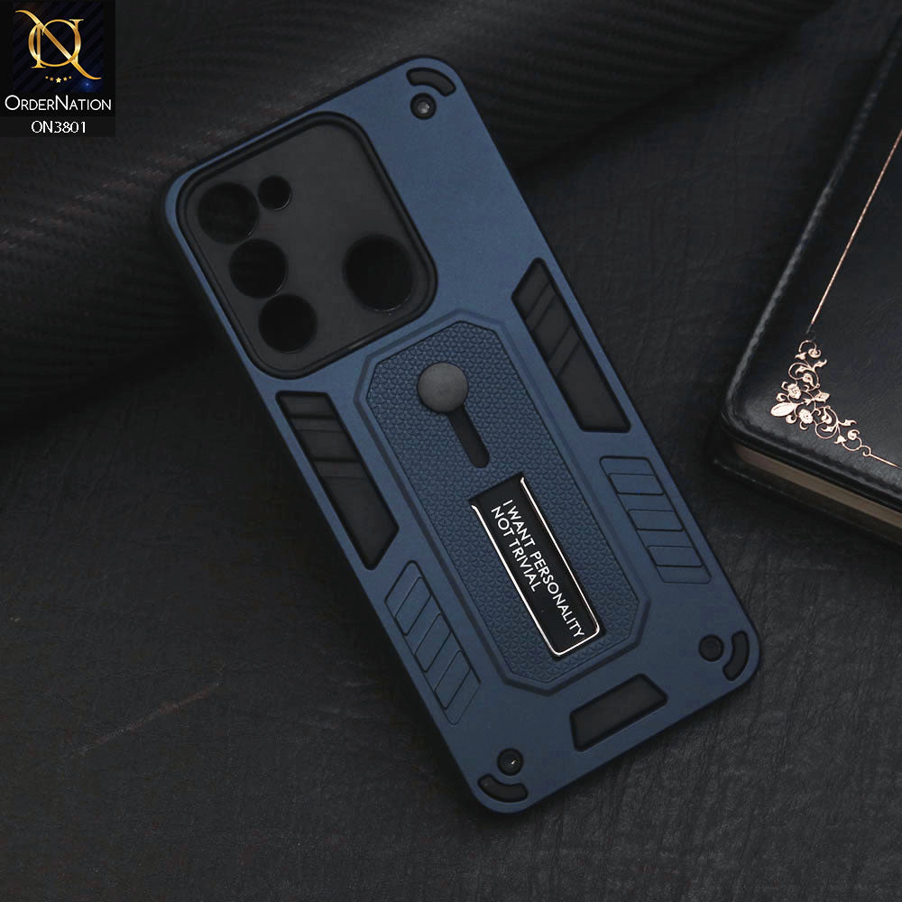 Tecno Spark Go 2022 Cover - Midnight Blue - Hybrid Stylish Slide Finger Grip With Metal Kickstand Soft Borders Case