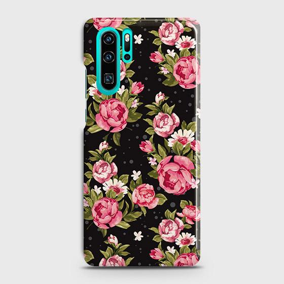 Huawei P30 Pro Cover - Trendy Pink Rose Vintage Flowers Printed Hard Case with Life Time Colors Guarantee