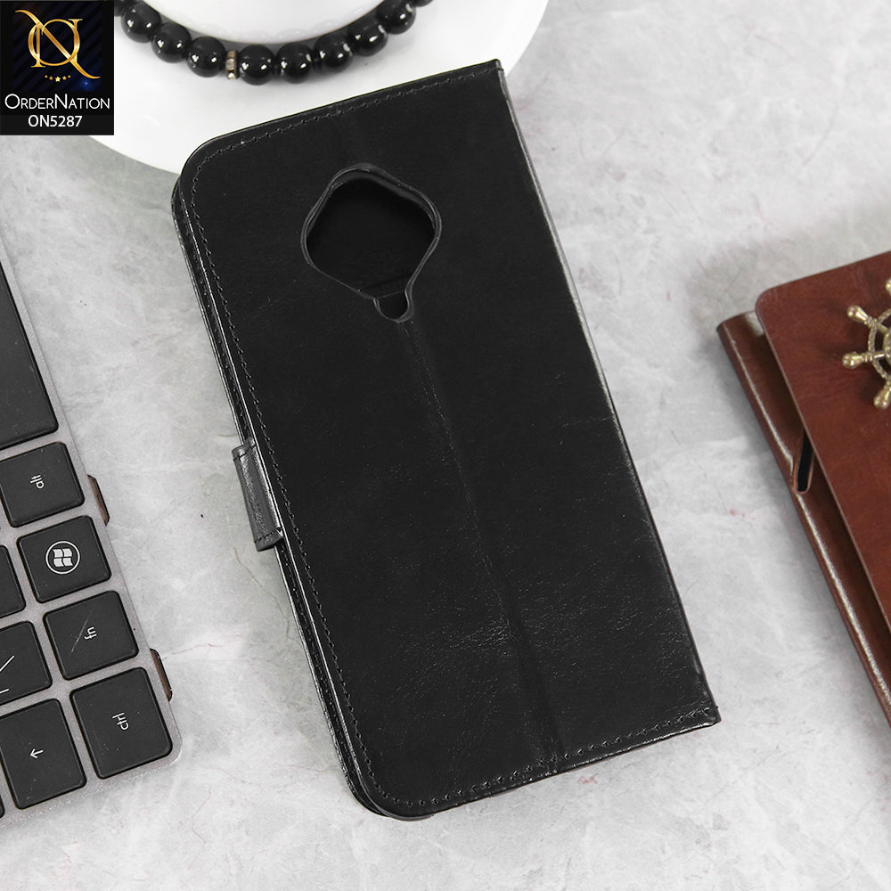 Vivo S1 Pro Cover - Black -  Premium PU Leather Magnetic Flip Book Card Slots Wallet Soft Case