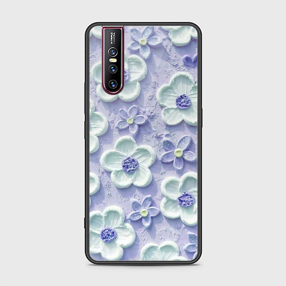 Vivo V15 Pro Cover - Floral Series - Design 4 - Purple & White - HQ Ultra Shine Premium Infinity Glass Soft Silicon Borders Case