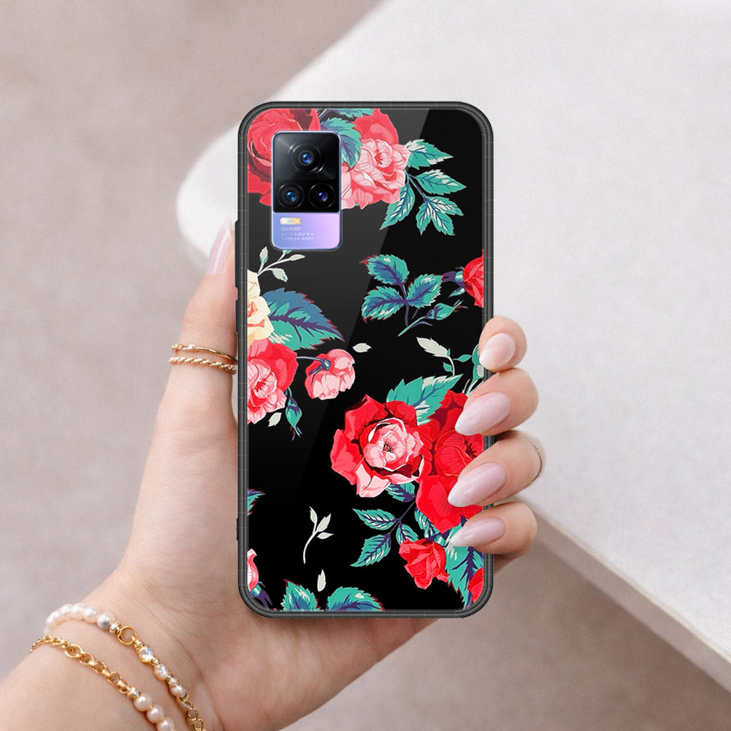 Vivo V21e Cover - Floral Series - HQ Ultra Shine Premium Infinity Glass Soft Silicon Borders Case
