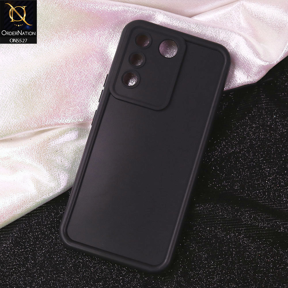 Vivo V27e Cover - Black - Soft Silicone Case With Round Bumper Matte TPU Shockproof Cover