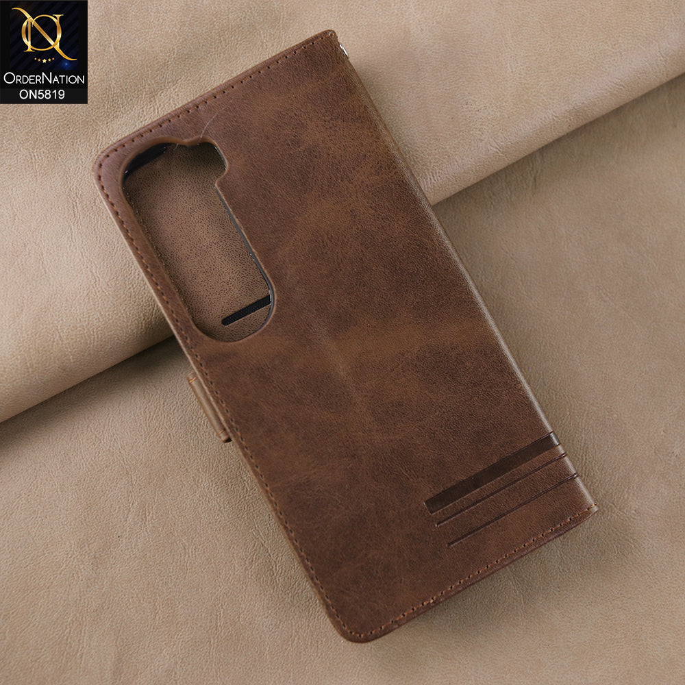 Vivo V40 Lite (IDN) Cover - Dark Brown -  Way Out Excellence Quality Soft Tpu Leather Flip Book With Card Holding Slots