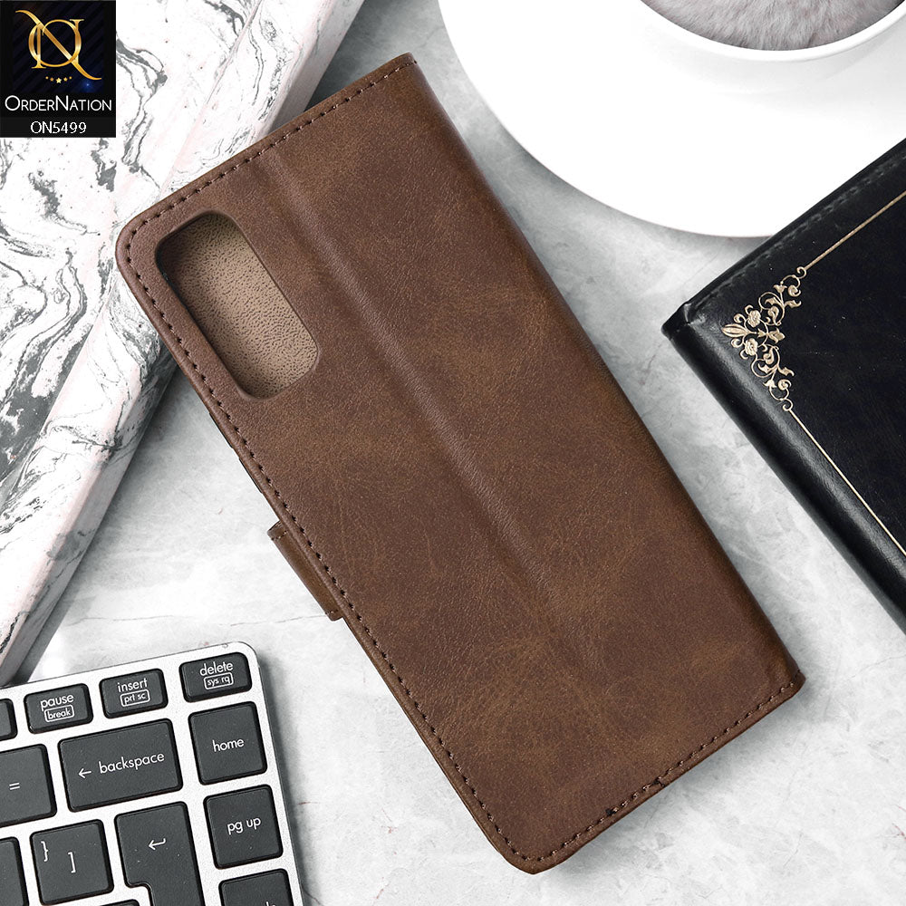Vivo Y12s Cover - Dark Brown - Premium PU Leather Magnetic Flip Book Card Slots Wallet Soft Case