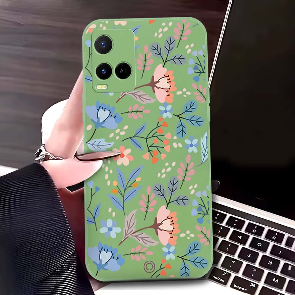 Vivo Y21G Cover - Light Green - D1 - ONation Floral Series - HQ Liquid Silicone Soft Case