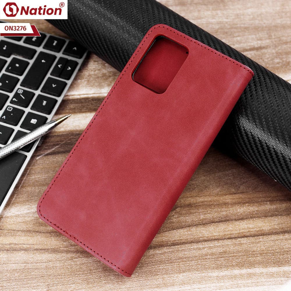 Vivo Y33t Cover - Red - ONation Business Flip Series - Premium Magnetic Leather Wallet Flip book Card Slots Soft Case