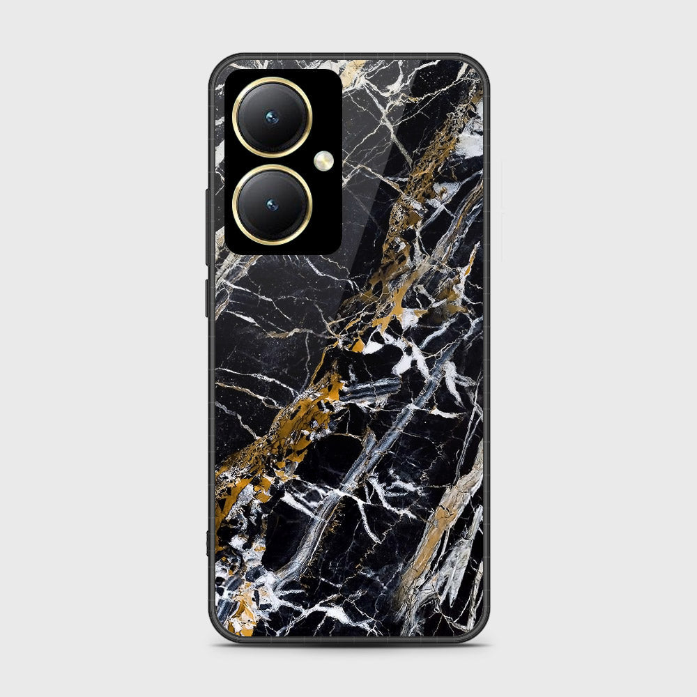 Vivo Y35 Plus Cover- Black Marble Series - HQ Ultra Shine Premium Infinity Glass Soft Silicon Borders Case
