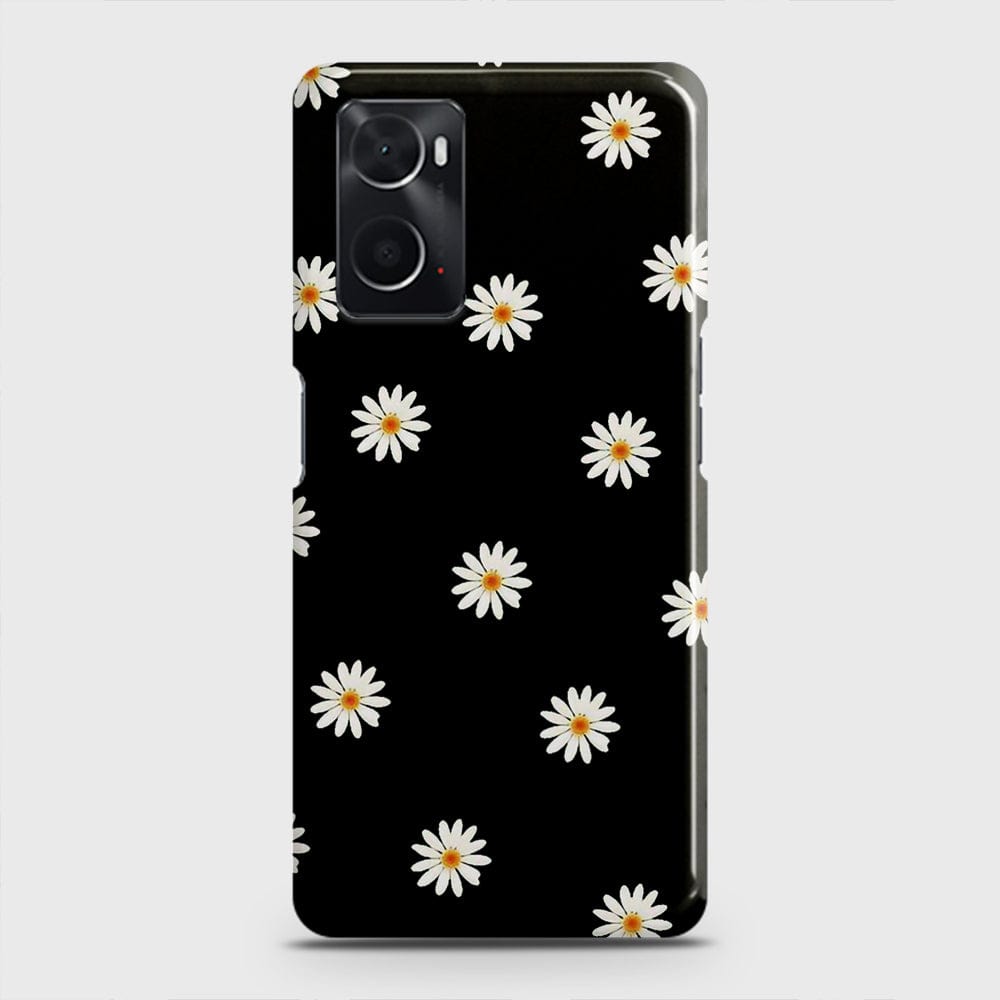 Oppo A96 4G Cover - Matte Finish - White Bloom Flowers with Black Background Printed Hard Case with Life Time Colors Guarantee