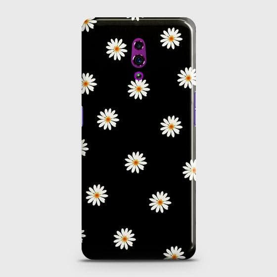 Oppo Reno Cover - Matte Finish - White Bloom Flowers with Black Background Printed Hard Case with Life Time Colors Guarantee