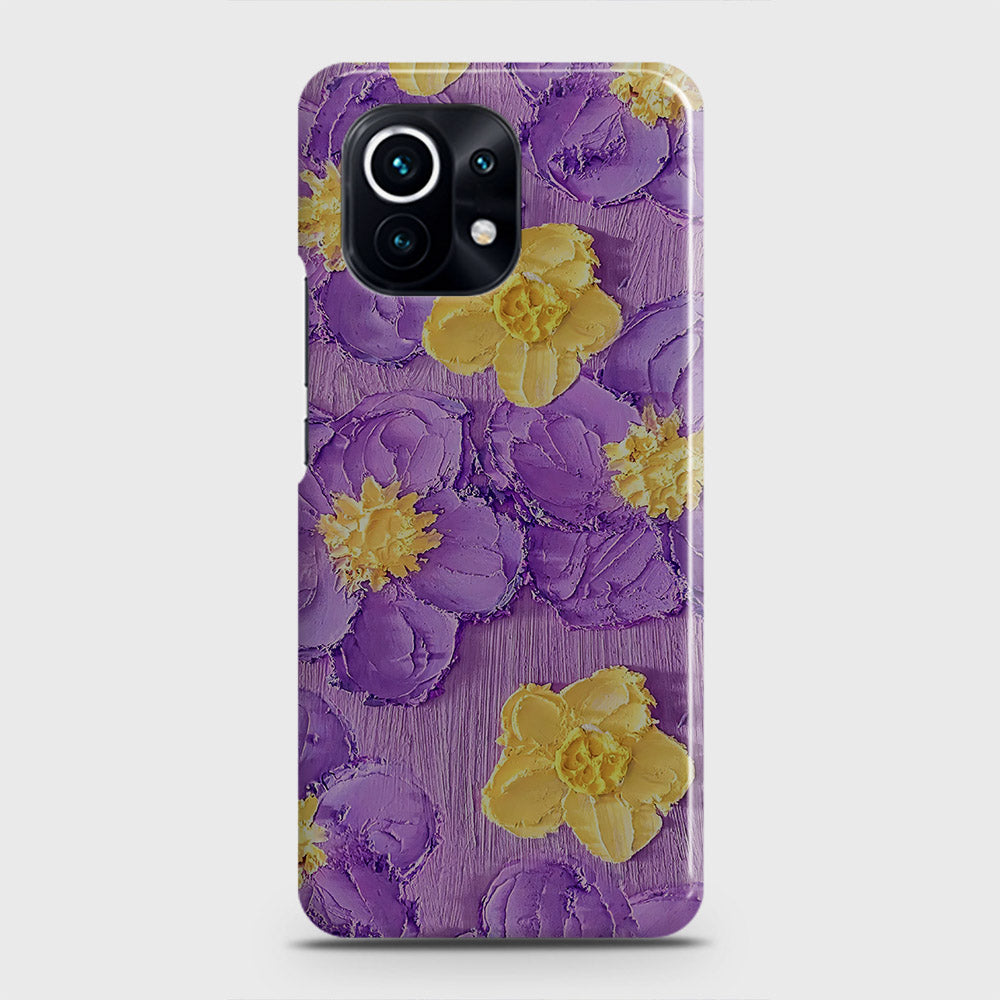 Xiaomi Mi 11 Lite Cover - Floral Series - Design 8 - Purple & Yellow - Matte Finish - Snap On Hard Case with LifeTime Colors Guarantee