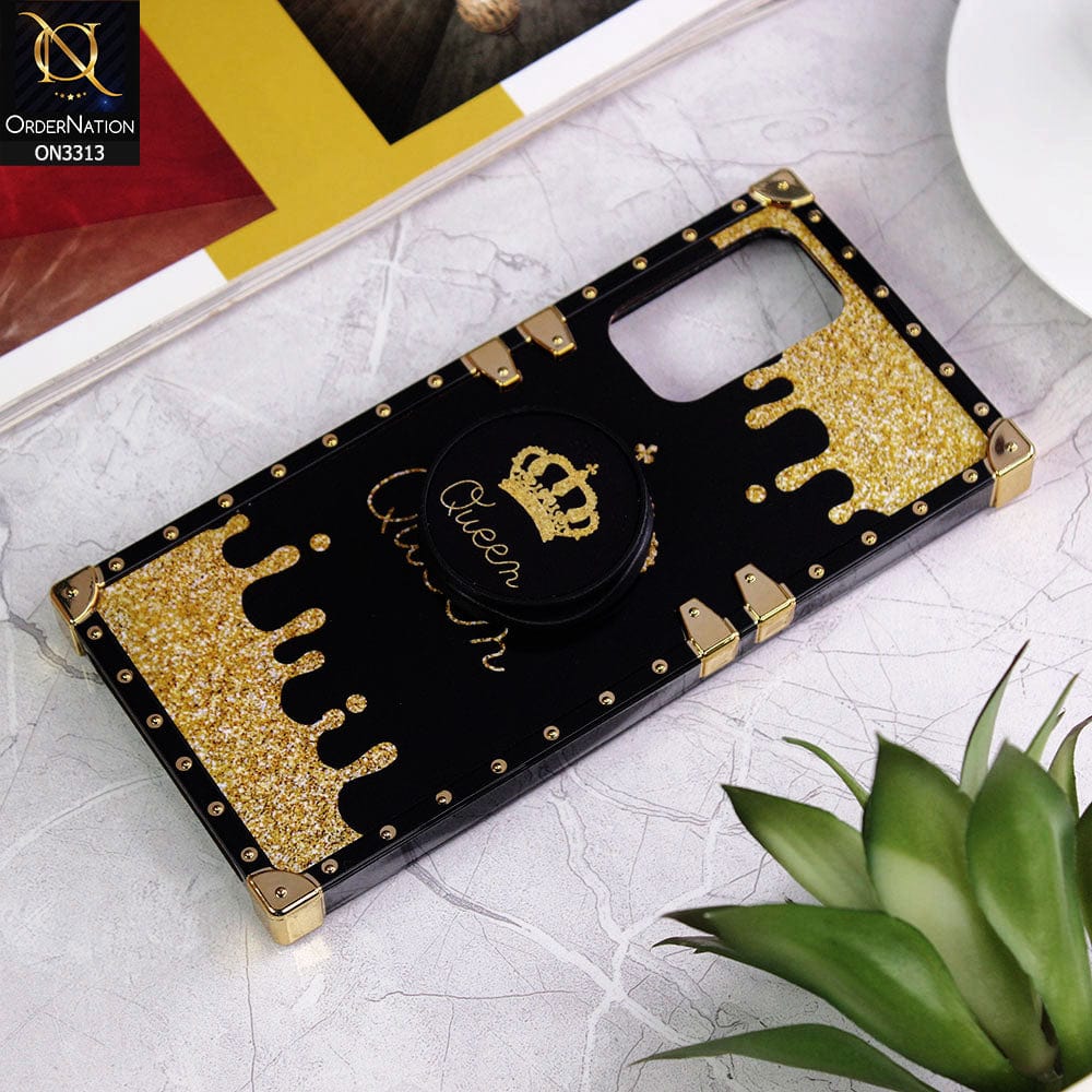 Infinix Note 7 Cover - Black - Golden Electroplated Luxury Square Soft TPU Protective Case with Popsocket Holder