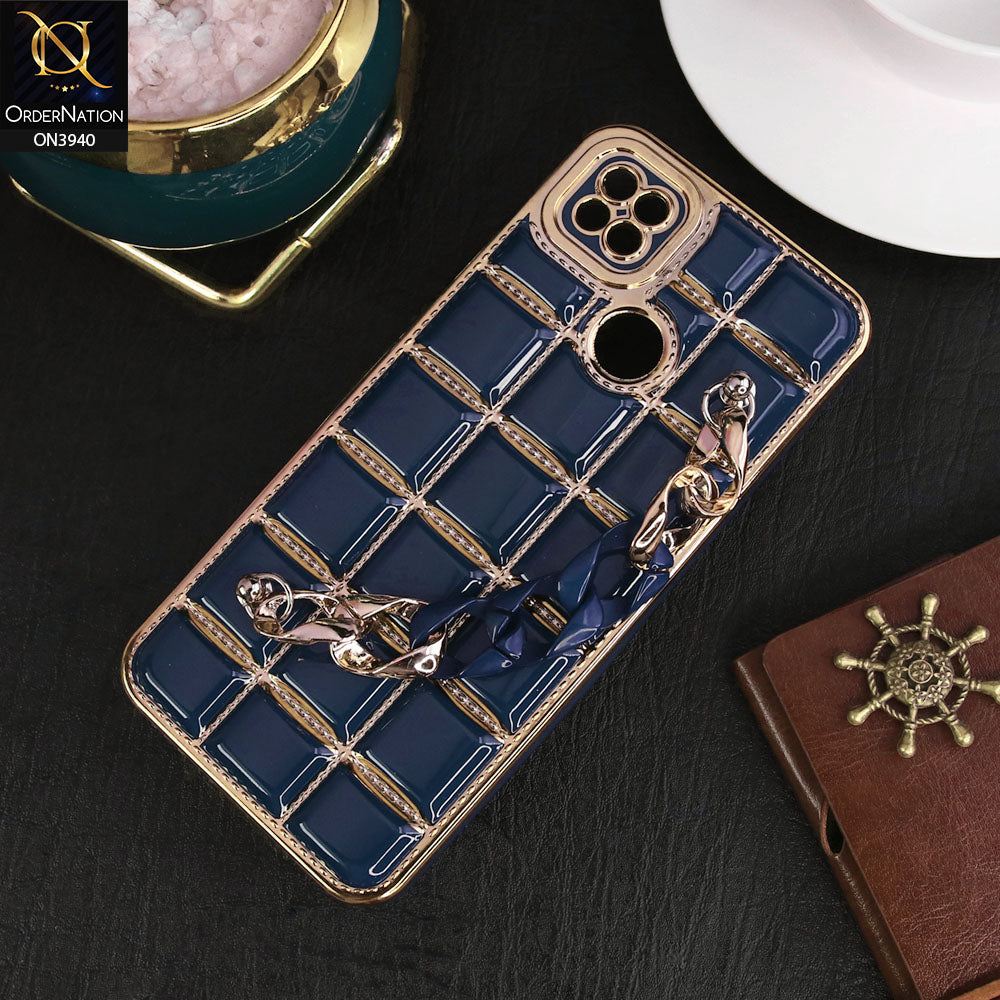 Xiaomi Redmi 9C Cover - Blue - 3D Electroplating Square Grid Design Soft TPU Case With Chain Holder