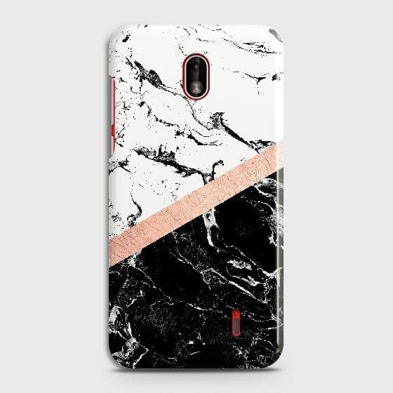 Nokia 1 Plus Cover - Black & White Marble With Chic RoseGold Strip Case with Life Time Colors Guarantee