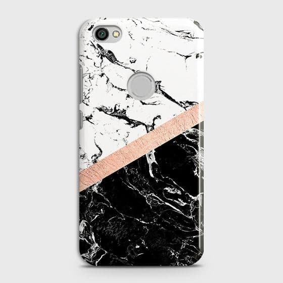 Xiaomi Redmi Note 6 Pro Cover - Black & White Marble With Chic RoseGold Strip Case with Life Time Colors Guarantee