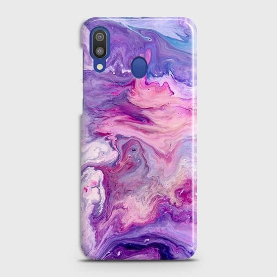 Samsung Galaxy M20 Cover - Chic Blue Liquid Marble Printed Hard Case with Life Time Colors Guarantee