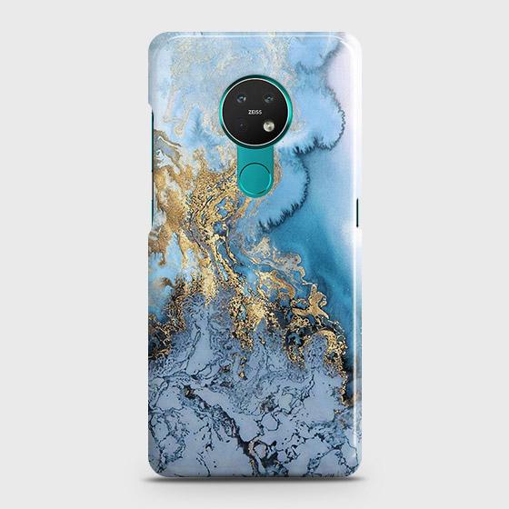 Nokia 7.2 Cover - Trendy Golden & Blue Ocean Marble Printed Hard Case with Life Time Colors Guarantee